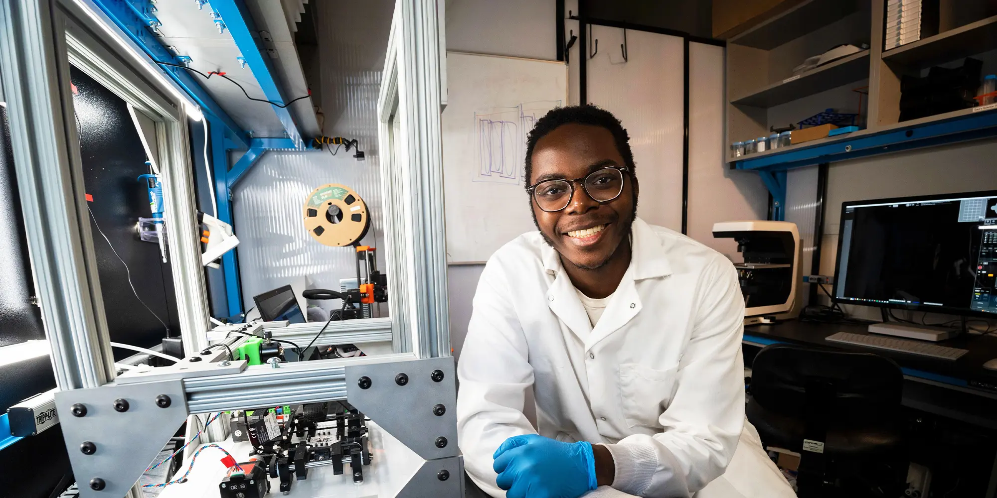 The recipient of a Summer Undergraduate Research Fellowship (SURF), Lameck — a College of Engineering rising senior with a double major in mechanical engineering and biomedical engineering — received hands-on experience in an engineering lab working on research that may ultimately lead to the creation of small-scale biodegradable robots.